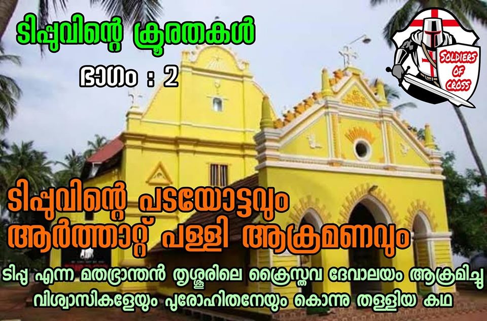 ടിപ്പുസുല്ത്താന്റെ പടനായകര് ആര്ത്താറ്റ് പള്ളിക്കും,വടക്കെ പടിപുര മാളികക്കും,വടക്കോട്ടുള്ള അങ്ങാടിക്കും,ചാട്ടുകുളങ്ങര അങ്ങാടിക്കും തീ വെച്ചു. ഇതിനെപ്പറ്റി ആര്ത്താറ്റ് പള്ളിപ്പാട്ടില് പറയുന്നത് ഇങ്ങനെ: