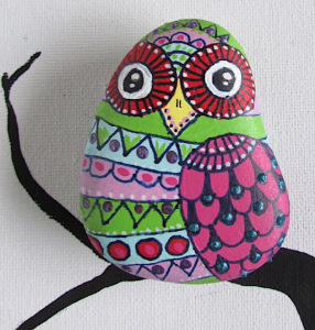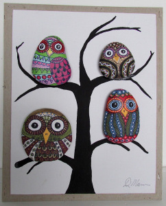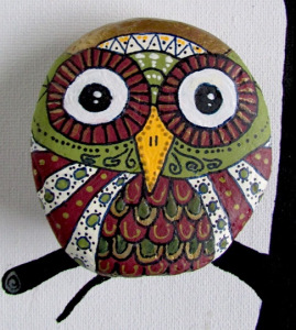 Once dried, I used heavy-duty construction glue to glue each owl in place on the canvas.