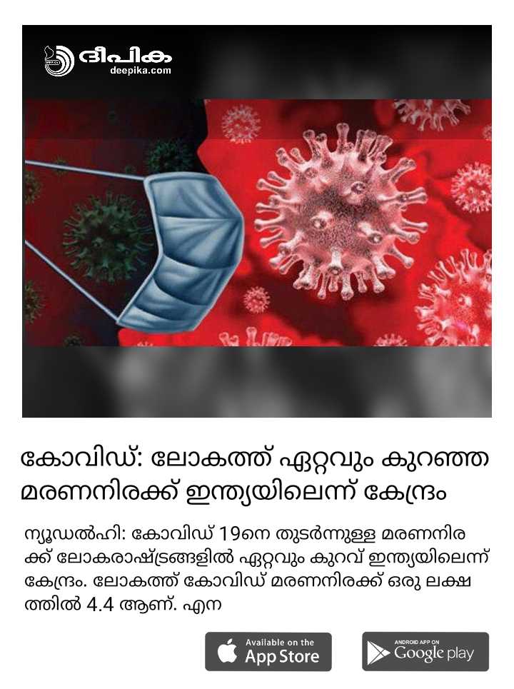 കോ​വി​ഡ്: ലോ​ക​ത്ത് ഏ​റ്റ​വും കു​റ​ഞ്ഞ മ​ര​ണ​നി​ര​ക്ക് ഇ​ന്ത്യ​യി​ലെ​ന്ന് കേ​ന്ദ്രം
