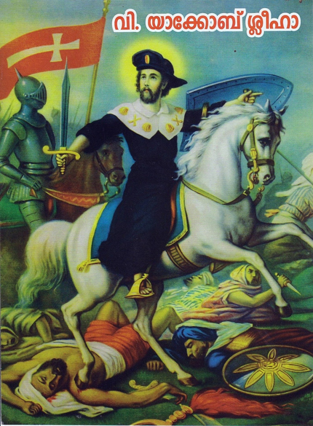 സെബദി പുത്രന്മാരിൽ ഒരുവനും ക്രിസ്തുവിന്റെ ബന്ധുവും ഇടി മുഴക്കത്തിന്റെ പുത്രനെന്ന് അറിയപ്പെടുന്നവനുമായ വി.യാക്കോബ് ശ്ലീഹായേ, ദിവ്യഗുരുവായ ദൈവ സുതന്റെ സത്യപ്രബോധനം വഴിയായി സ്പെയിൻ രാജ്യത്തെ ക്രൈസ്തവ രാജ്യം ആക്കിയല്ലോ, ക്രൂശിതന് സാക്ഷ്യം വഹിക്കുവാൻ ഹേറോദ് അഗ്രിപ്പായുടെ വാളിൻ മുന്നിൻ സധൈര്യം കഴുത്ത് കാണിച്ച് ശിരഛേദനം വഴിയായി രക്തസാക്ഷി മകുടം ചൂടിയ അപ്പസ്തോല പ്രമുഖനെ, പാപികളും ബലഹീനരു ക്ലേശിതരും പീഢിതരും ആയ ഞങ്ങളെ സഹായിക്കണമേ. മുഹമ്മദ്ദീയ-ഘോര യുദ്ധത്തിൽ വലിയ പരാജയഭീതിയോടെ തങ്ങളുടെ അപ്പസ്തോലനായ അങ്ങയുടെ മദ്ധ്യസ്ഥം യാചിച്ച സ്പെയിൻ രാജ്യത്തെ ശത്രുകരങ്ങളിൽ നിന്നും രക്ഷിപ്പാൻ വെള്ള കുതിര പുറത്ത് വെള്ളിടിത്തീ പോലെ ജ്വലിക്കുന്ന വാളുമേന്തി അങ്ങ് പടപൊരുതിയല്ലോ, റഫായേൽ മാലാഖയും സ്വർഗ്ഗ സൈന്യങ്ങളും അങ്ങയോട് ചേർന്ന് യുദ്ധം ചെയ്യുകയും ശത്രുക്കളെ നിഷ്കരുണം വധിച്ച് വലിയ വിജയം നേടികൊടുക്കുകയും ചെയ്തുവല്ലോ, ‘അസ് മോദേവൂസ്’ എന്ന ദുഷ്ഠ പിശാചിൽ നിന്നും സാറായേയും തോബിയാസിനെയും രക്ഷിച്ച റഫായേൽ മാലാഖയോട് ചേർന്ന് ‘ജിന്ന്എന്ന ദുഷ്ടശക്തിയിൽ നിന്നും’ അവന്റെ ദുഷ്ടരായ ദൂതരിൽ നിന്നും സകല ക്രൈസ്തവ വിശ്വാസികളേയും പ്രത്യേകിച്ച് എന്നെയും രക്ഷിക്കണമെ. ഗുരുവും കർത്താവുമായ യേശുക്രിസ്തുവിന്റെ സ്വർഗ്ഗീയ മഹത്വത്തിൽ, അവന്റെ വലതുഭാഗത്ത് ആയിരിക്കുവാൻ അഭിലഷിച്ച അങ്ങേക്ക് സ്വർഗ്ഗത്തിൽ ലഭിച്ചിരിക്കുന്ന ഉന്നതമായ മഹത്വത്തിൽ നിന്നും അങ്ങേ മാധ്യസ്ഥം യാചിക്കുന്ന ഞങ്ങളെ സഹായിക്കണമെ.