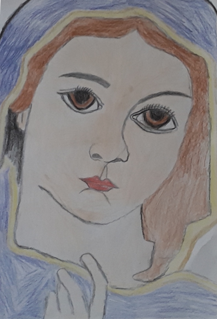 Holy Mary, Colour Sketch by Adhil Xavier, Kaduvakulam, Kottyam