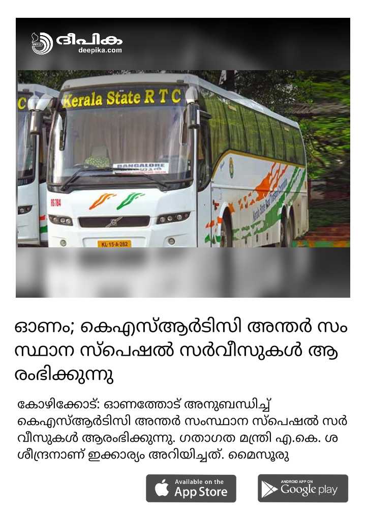 ഓ​ണം; കെഎസ്ആ​ർ​ടി​സി അ​ന്ത​ർ സം​സ്ഥാ​ന സ്പെ​ഷ​ൽ സ​ർ​വീ​സു​ക​ൾ ആ​രം​ഭി​ക്കു​ന്നു