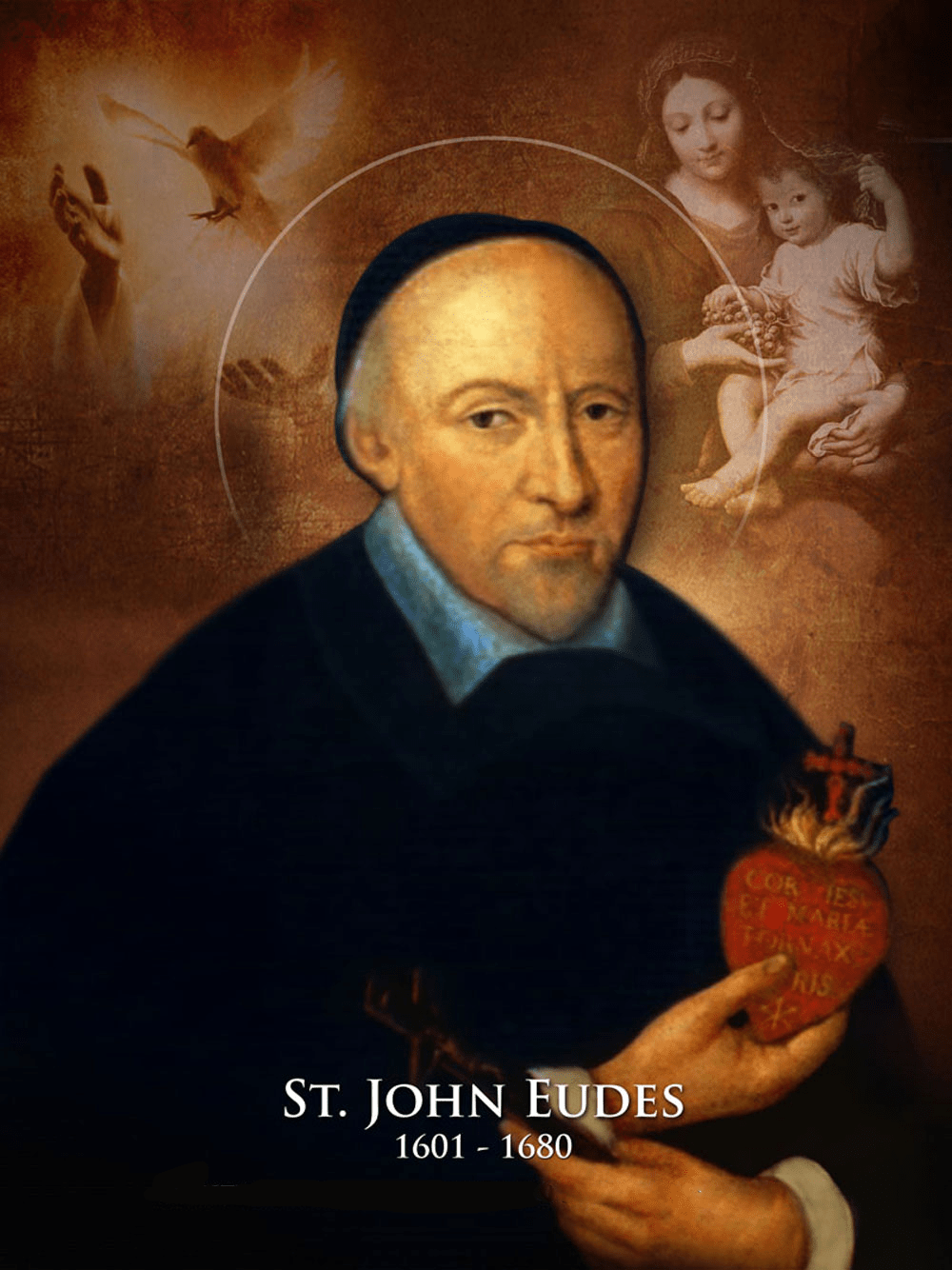 ഫ്രഞ്ച് പുരോഹിതനും രണ്ട് സന്യാസ സഭകളുടെ സ്ഥാപകനുമായിരുന്ന വിശുദ്ധ ജോണ് യൂഡ്സ് ഫ്രാന്സിന്റെ വടക്ക് ഭാഗത്തുള്ള ‘റി’ എന്ന സ്ഥലത്താണ് ജനിച്ചത്. അക്കാലത്ത് നിലനിന്നിരുന്ന ജാന്സനിസമെന്ന മതവിരുദ്ധവാദത്തിന്റെ കാര്ക്കശ്യത്തിനിടയിലും ജോണ് ബാല്യത്തില് തന്നെ പ്രഥമ ദിവ്യകാരുണ്യ സ്വീകരണം നടത്തി. ഒരു തികഞ്ഞ പ്രേഷിതനായിരുന്ന വിശുദ്ധന് യേശുവിന്റെ തിരുഹൃദയത്തോടും, പരിശുദ്ധ മറിയത്തിന്റെ അമലോല്ഭവ ഹൃദയത്തോടുമുള്ള ഭക്തിയുടെ ഒരു വലിയ പ്രചാരകനായിരുന്നു.