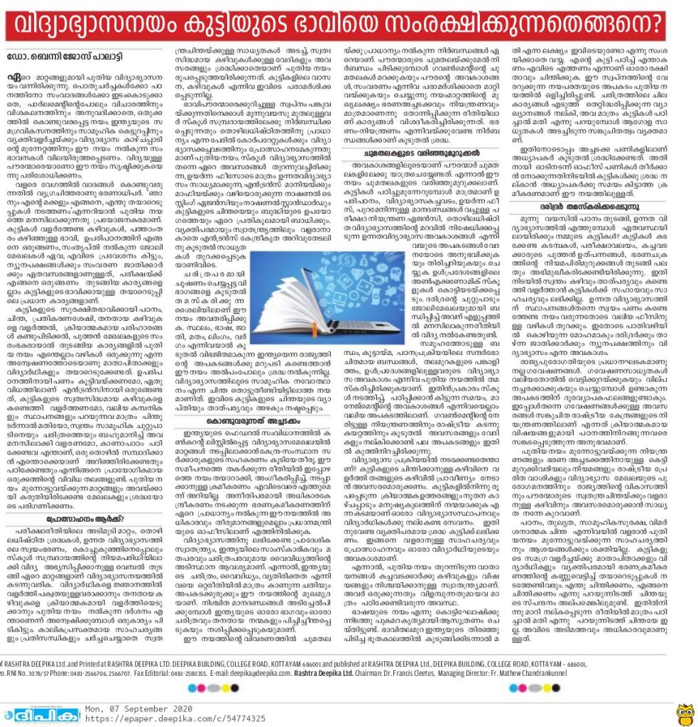 പുതിയ വിദ്യാഭാസ നയം, ദീപിക എഡിറ്റോറിയൽ
