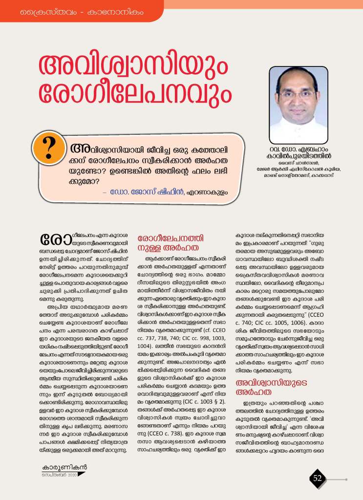 അവിശ്വാസിയും രോഗീലേപനവും