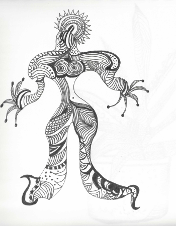 Earlier this month I shared a “Fletcher Doodle” — a crazy mish-mash of lines and circles going this way and that. It was an ink doodle I worked on while I was waiting for my husband’s appointment with the retinologist — Dr. Fletcher — to be completed. Because of the pandemic, I’m no longer allowed to go into the examination room. In fact, I can’t even go into the office. So, I sit patiently in the hall on the 3rd floor of the Carondelet Medical Building, staring out the window toward the parking lot, or watching the potted plants silently growing. Now and then another patient or a staff member walks by.