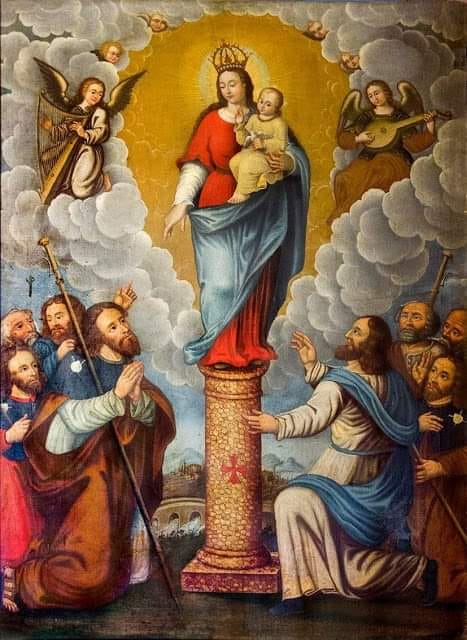 വിശുദ്ധ യാക്കോബ് സ്പെയിനിൽ സുവിശേഷം പ്രഘോഷിക്കുന്ന സമയം. കാര്യമായ രീതിയിൽ പ്രേഷിത വേല നിർവ്വഹിച്ചട്ടു വളരെ കുറച്ചുപേരെ മാത്രമേ യാക്കോബിനു മാനസാന്തരപ്പെടുത്താനുള്ളു. ഹൃദയവേദനയോടെ യാക്കോബ് ശ്ലീഹാ തന്റെ കൊച്ചു സഭാ സമൂഹത്തോടെപ്പം പ്രാർത്ഥിക്കുമ്പോൾ, പരിശുദ്ധ കന്യകാമറിയം അത്ഭുതകരമായി പ്രത്യക്ഷപ്പെട്ടു. മറിയം ഒരു സ്തുപത്തിനു മുകളിൽ നിൽക്കുന്നു. അവൾക്കു ചുറ്റു മാലാഖമാരുടെ ഒരു ഗണം.
