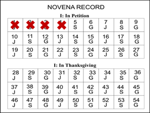 Hail! Queen of the Most Holy Rosary, my Mother Mary, hail! At your feet I humbly pray and offer you a crown of snow-white roses, to remind you of your joys. Each ten bound together, recalling to you a joyful mystery, with my petition for a particular grace.