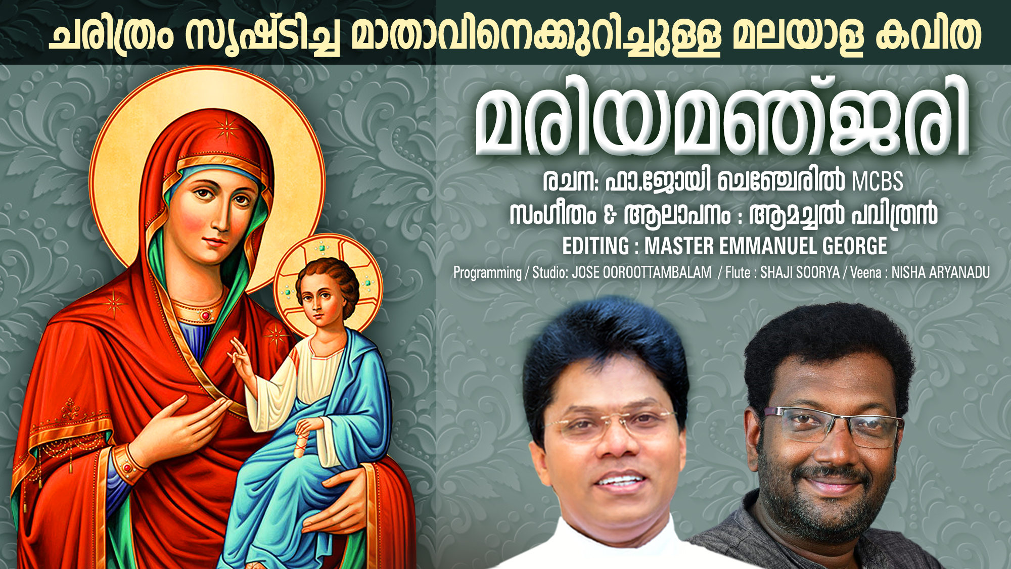 മരിയമഞ്ജരി / Mariyamanjari, Marian Poem / Fr. Joy Chencheril MCBS / Amachal Pavithran / Editing: Emmanuel George മരിയമഞ്ജരി / Mariyamanjari, Marian Poem / Poem on Mary / Virgin Mary / Christian Devotional latest Lyric & Concept: Fr. Joy Chencheril MCBS Music & Recitation: Amachal Pavithran Video Editing: Emmanuel George Programming: Jose OOroottambalam Studio / Audio Mixing: … Continue reading മരിയമഞ്ജരി / Mariyamanjari, Marian Poem / Fr. Joy Chencheril MCBS / Amachal Pavithran / Emmanuel George