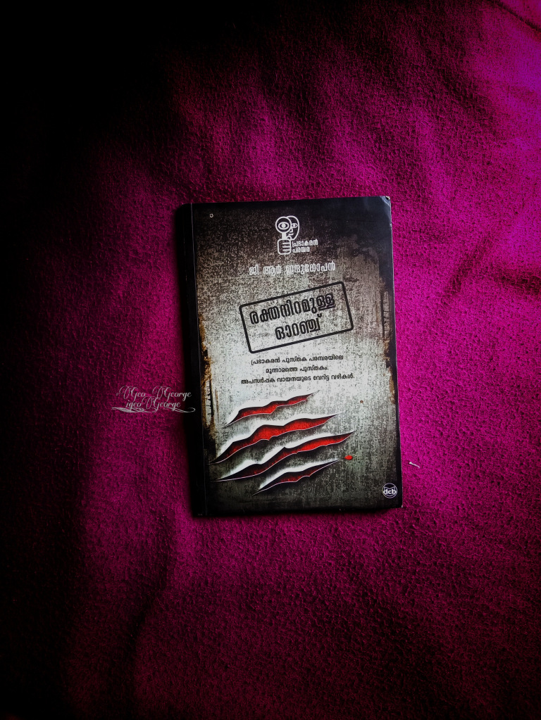 രക്തനിറമുള്ള ഓറഞ്ച് ” ജി ആർ ഇന്ദുഗോപന്റെ പ്രഭാകരൻ സീരിസിൽ മൂന്നാമത്തെ പുസ്തകം.ആദ്യ രണ്ടു ബുക്കിൽ നിന്നും ഒരുപാട് വ്യത്യസ്തമാണ് പ്രഭാകരന്റെ മൂന്നാം വരവ്.ആദ്യ നോവലുകൾ പോലെ ഡിറ്റക്റ്റീവ് പ്രഭാകരന്റെ ത്രില്ലടിപ്പിക്കുന്ന അന്വേഷണവഴികൾ പ്രതിഷിക്കുന്നവർക്ക് ചിലപ്പോൾചെറിയൊരു നിരാശ തോന്നും രക്തനിറമുള്ള ഓറഞ്ച് വായിക്കുമ്പോൾ. കാരണം ഇത് പ്രഭാകരന്റെ മാത്രം കഥയല്ല.പുതിയ കുറച്ചു കഥാപാത്രങ്ങളുടെ ജീവിതത്തിലൂടെയാണ് പ്രിയപ്പെട്ട ഇന്ദുഗോപൻ വായനക്കാരെ കൊണ്ട് പോവുന്നത്. ‘രക്ത നിറമുള്ള ഓറഞ്ച്’, ലഘുനോവലായ ‘രണ്ടാം നിലയിൽ ഉടൽ’ എന്നിവയാണ് നൂറ്റിഇരുപത്തിയേഴു പേജുള്ള ബുക്കിന്റെ ഉള്ളടക്കം.