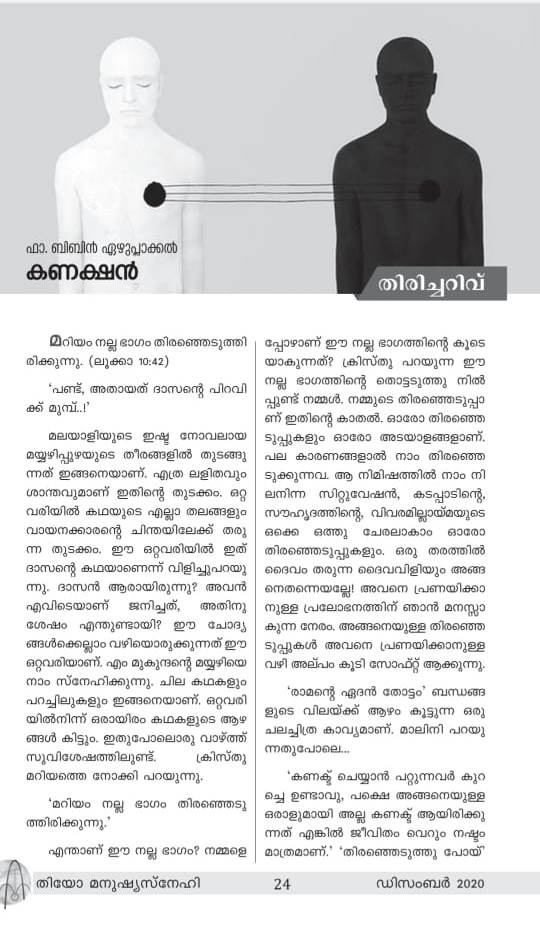 Connection, A Write up in Manushyasnehi by Fr Bibin Ehuplackal MCBS
