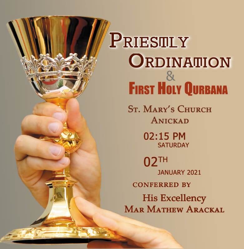 Priestly Ordination and First Holy Qurbana of Dn Joseph Kollamparampil (Potananickal) MCBS 02-01-2020 @ 02.15 pm