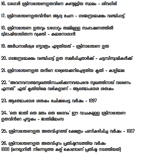 QUESTION AND ANSWER about SRINARAYANA GURU