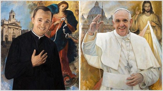 Pope Francis turned 84 today. Tanti auguri, Santo Padre! Earlier this week, on December 13, he marked the 51st anniversary of his priestly ordination. Here is a photo of the stamps issued by the Vatican last year to mark his 50th anniversary.