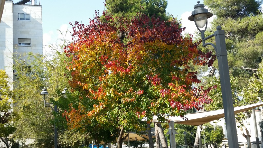 I am certainly not one to stop and smell the flowers, let alone photograph them, but several weeks ago a tree beckoned at me, its leaves purple at the top, flaming in the middle, and healthy green below. How beautifully leaves grow old, how full of light and color.