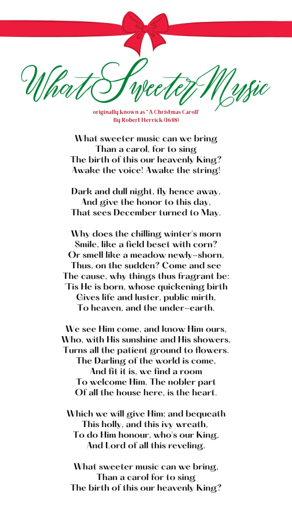 This poem written by English country clergyman Robert Herrick in the 17th century, was put to beautiful music by John Rutter 3 centuries later. It so beautifully expresses the heart from which we look upon this Christmas Day, that I had to include the words for you here.