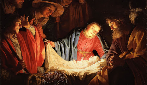 There are none who clamour around him: only an ox and an ass lending their warmth to the newborn infant; with a humble woman, and a poor and tired man, in adoration beside him.