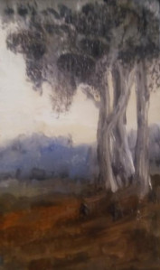 The painting I’m sharing today is the 15th in my series of 31 little landscapes. It was inspired by “The Sentinels” by Charles Warren Eaton. As usual, I took my interpretation of his painting in a slightly different direction — lighter skies, trees that are a bit twisted rather than straight, and a more defined foreground area.
