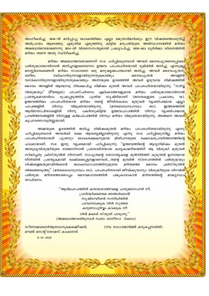 അമലോത്ഭവ തിരുനാൾ Feast of Immaculate Conception – Homily