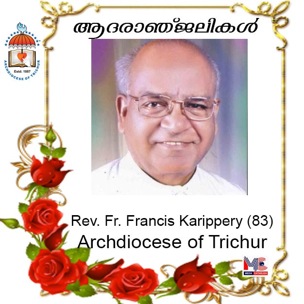 Rev. Fr. Francis Karippery (83) passed away today (Thursday, 25/02) at 3. 00 PM. Funeral is tomorrow (Friday, 26/02) at 2.30 PM in Parappukkara Church. Body will be in St. Joseph Priests’ Home from tomorrow (Friday, 26/02) at 6.30 AM to 8.30 AM. At 9.30 AM body will be at Mulangu Church and from 10.30 AM body will be at home in Mulangu. Funeral starts at 1.45 PM from Home and at 2.30 PM in Parappukara Church. Please pray for the departed Soul. V. G.