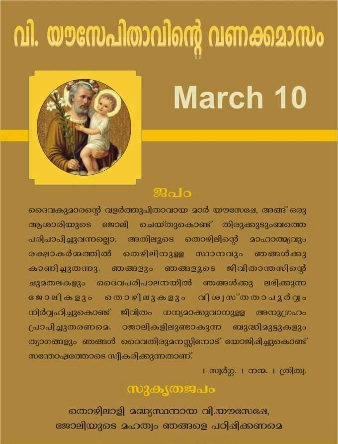 • യൗസേപ്പുപിതാവിന്‍റെ വണക്കമാസംയൗസേപ്പുപിതാവിന്‍റെ വണക്കമാസം