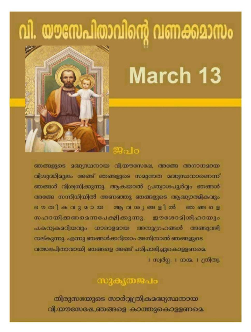 • യൗസേപ്പുപിതാവിന്‍റെ വണക്കമാസംയൗസേപ്പുപിതാവിന്‍റെ വണക്കമാസം