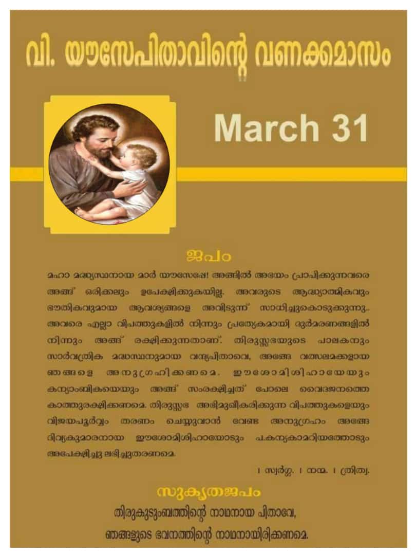 • യൗസേപ്പുപിതാവിന്‍റെ വണക്കമാസംയൗസേപ്പുപിതാവിന്‍റെ വണക്കമാസം