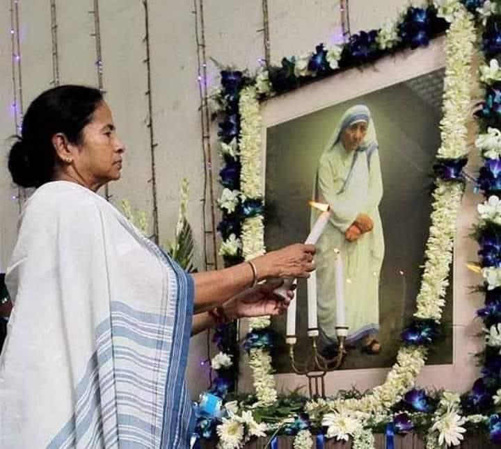 Mamatha Banerjee Lights Candles before Mother Theresa of Calcutta