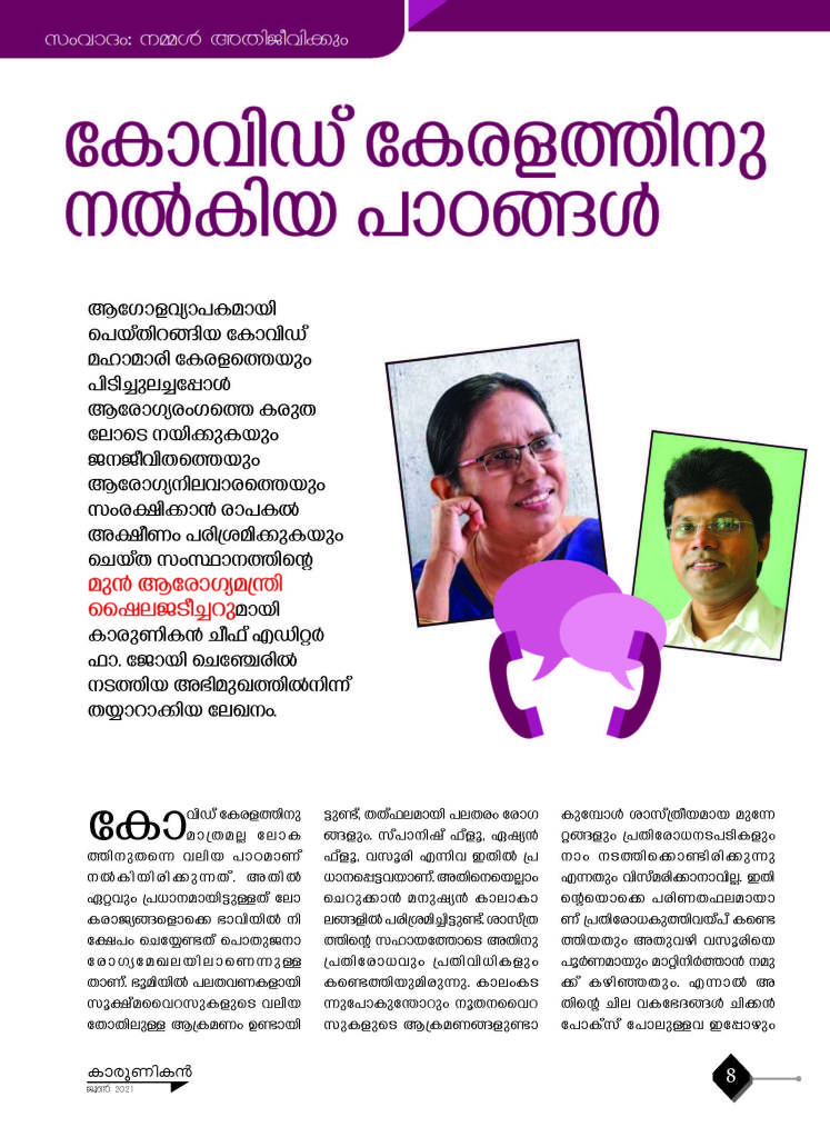 Interview with Shylaja Teacher by Fr Joy Chencheril MCBS for Karunikan Magazine