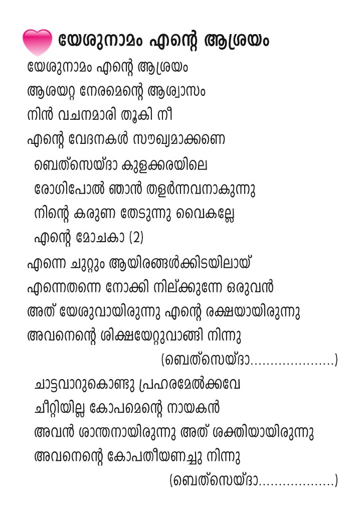 Yeshunamam Ente Ashrayam, Lyrics