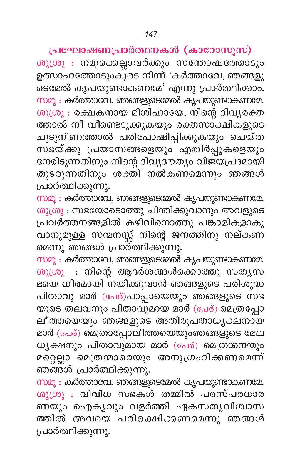 കൈത്താക്കാലം, പ്രോപ്രിയ, സീറോമലബാർ കുർബാനക്രമം