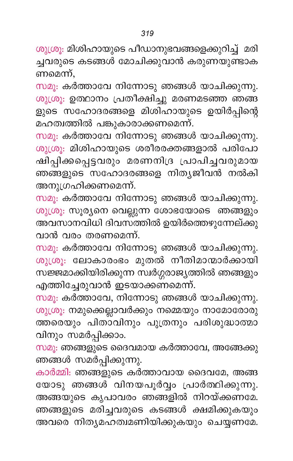 മരിച്ചവരുടെ ഓർമ്മ, പ്രോപ്രിയ, സീറോമലബാർ കുർബാനക്രമം