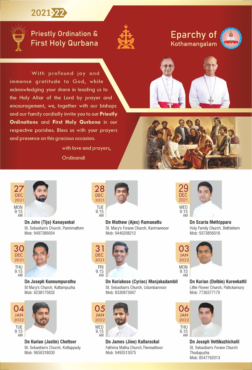 Priestly Ordination and First holy Qurbana 2021-22 Eparchy of Kothamangalam
