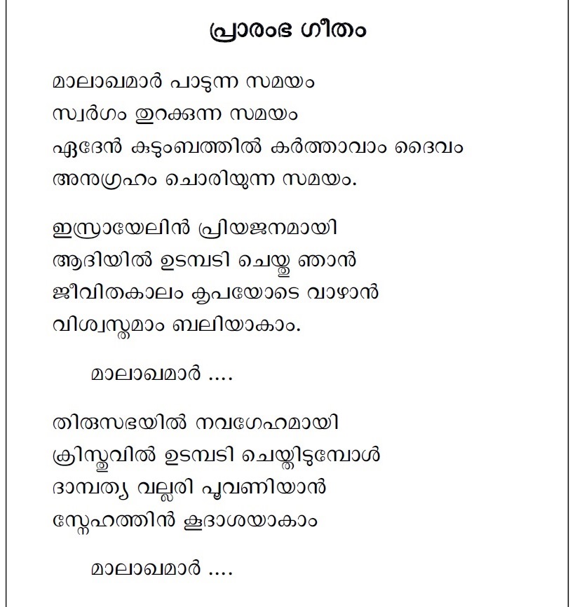 Marriage Introduction Song | Syromalabar Rite | Malakhamar Padunna Samayam… Lyrics | മാലാഖമാർ പാടുന്ന സമയം