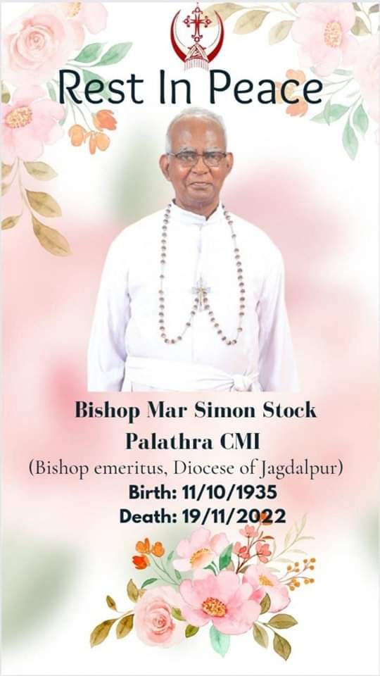 With deep sentiments of sorrow we inform you that our beloved Bishop Mar Simon Stock Palathra CMI (Bishop emeritus, Diocese of Jagdalpur) is called to eternal rest today, 19 November, 2022 morning at 1.30 am, MPM Hospital, Jagdalpur. His mortal remains will be kept in St. Joseph’s Cathedral, Jagdalpur for paying homage from 10 am today. The burial is scheduled on 22nd November 02.00 pm at Jagdalpur.