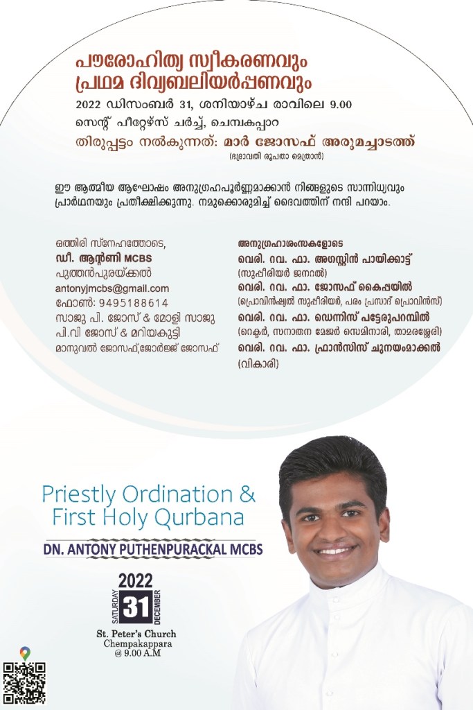 Priestly Ordination and First Holy Qurbana of Dn Antony Puthenpurackal MCBS