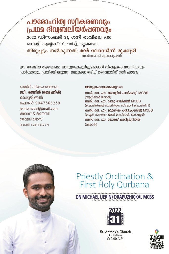 Priestly Ordination and First Holy Qurbana of Dn Jerin Orapuzhickal MCBS