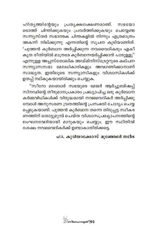 Synodal Qurbana, Fr Kuriakose Moonjelil MCBS