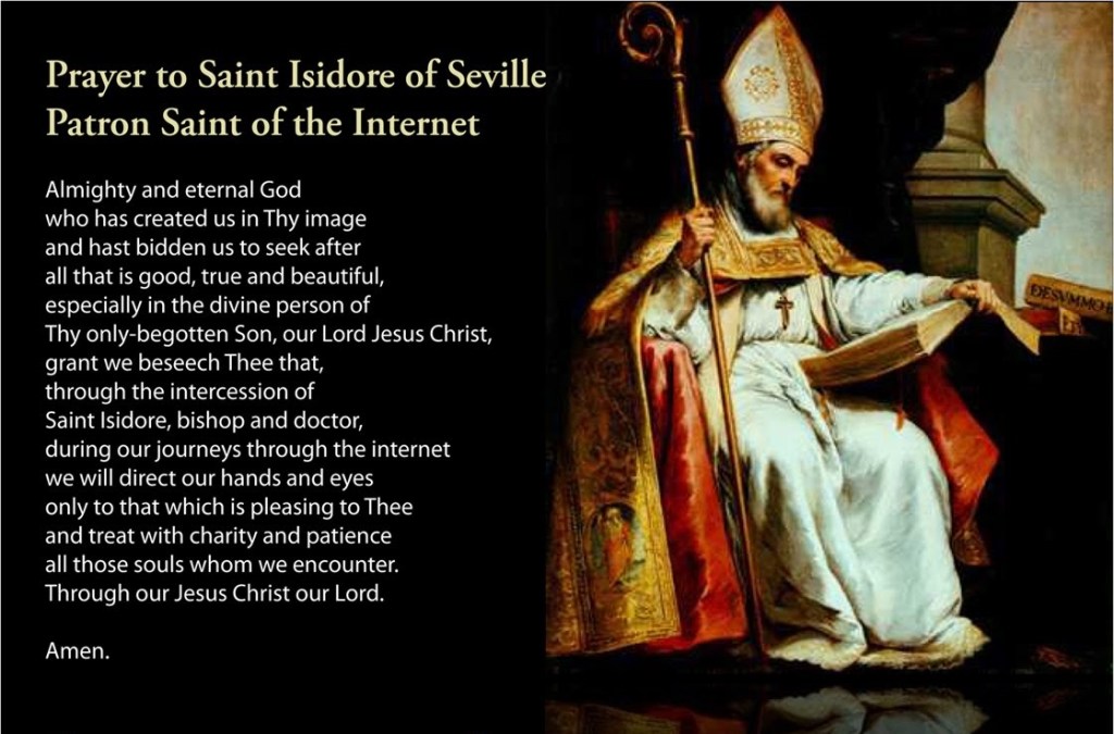 सेविले के संत इसिडोर की मृत्यु वर्ष 636 के 4 अप्रैल को हुई थी। बाद में उन्हें कलीसिया के धर्माचार्य के रूप में नामित किया गया था, उन्हें हाल ही में इंटरनेट उपयोगकर्ताओं के संरक्षक संत के रूप में प्रस्तावित किया गया था, क्योंकि ईश्वरीय महिमा की सेवा के लिए दुनिया के संचित ज्ञान का उपयोग करने का उनका दृढ़ संकल्प था।