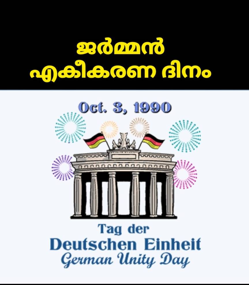 2023 ഒക്ടോബർ 3 ജർമ്മൻ എകീകരണത്തിൻ്റെ 33 വർഷം ആഘോഷിക്കുന്നു. ലോകത്തെ ഏറ്റവും ശക്തമായ വ്യവസായവൽകൃത രാജ്യങ്ങളിലൊന്നാണ് യൂറോപ്പിന്റെ പടിഞ്ഞാറുഭാഗത്ത് സ്ഥിതി ചെയ്യുന്ന ജർമ്മനി എന്ന രാജ്യം. ഫെഡറൽ റിപ്പബ്ലിക് ഓഫ് ജർമ്മനി ( Bundesrepublik Deutschland) എന്നാണ് ജർമ്മനിയുടെ ഔദ്യോഗിക നാമം. ഒക്ടോബർ മൂന്നിനാണ് ജർമ്മൻ ജനത ഏകീകരണ ദിനം ആഘോഷിക്കുന്നത്. (Tag der Deutschen Einheit).