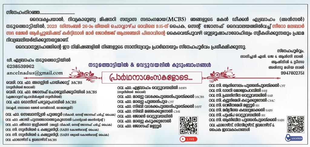 Priestly Ordination of Dn Abraham (Ancel) Naduthottiyil MCBS