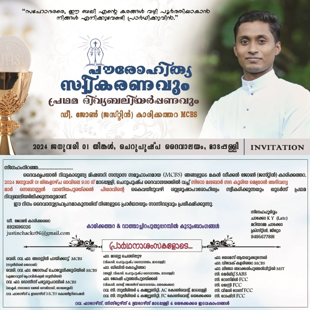 Priestly Ordination and First Holy Qurbana of Rev. Dn Justin Karikkathara MCBS