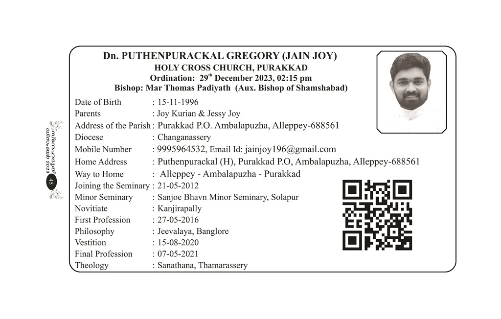 Priestly Ordination and First Holy Qurbana of Rev. Dn (Gregory) Jain Puthenpurackal MCBS