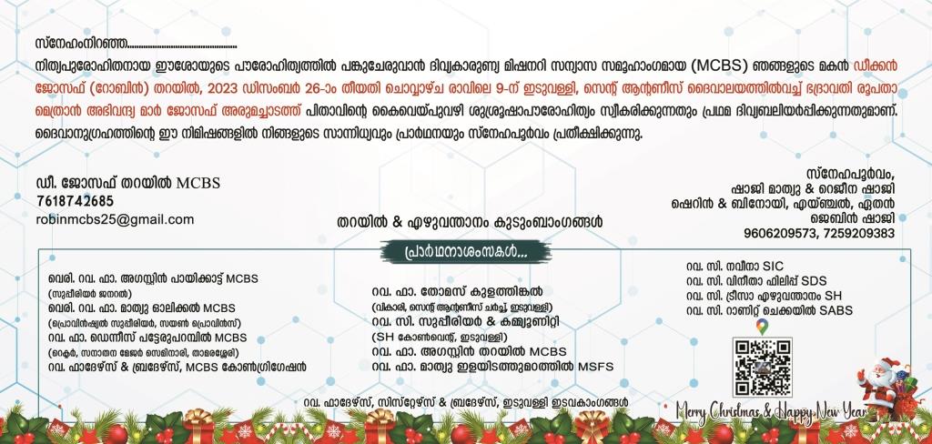 Priestly Ordination and First Holy Qurbana of Rev. Dn (Joseph) Robin Tharayil MCBS