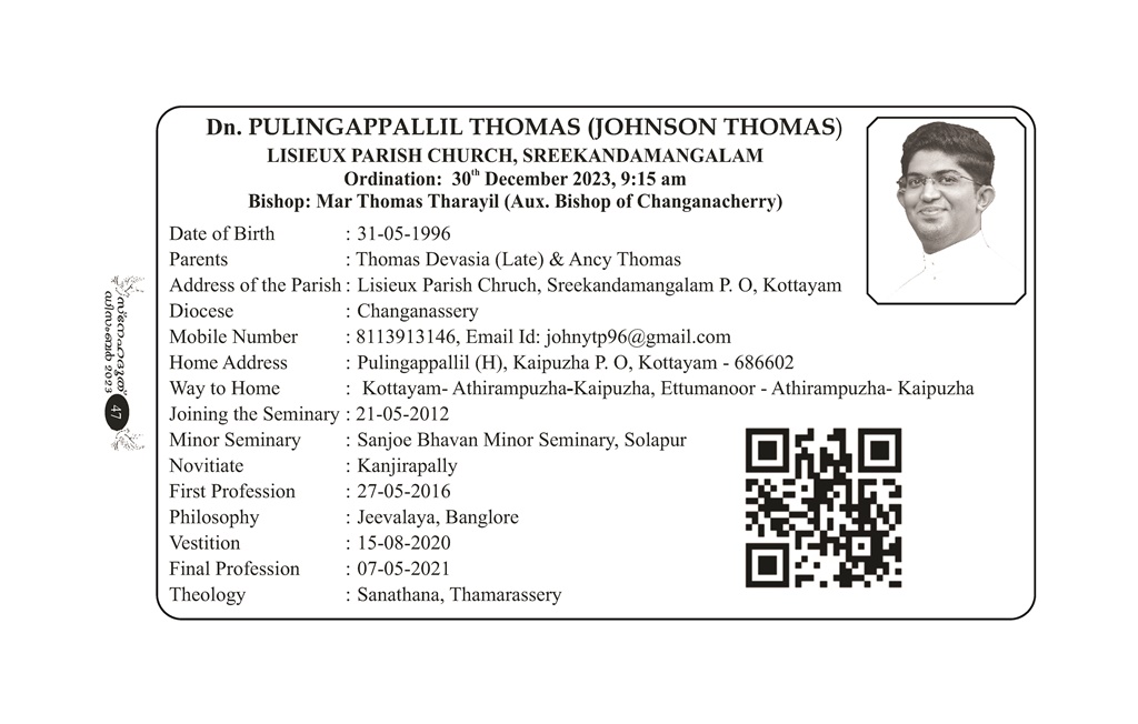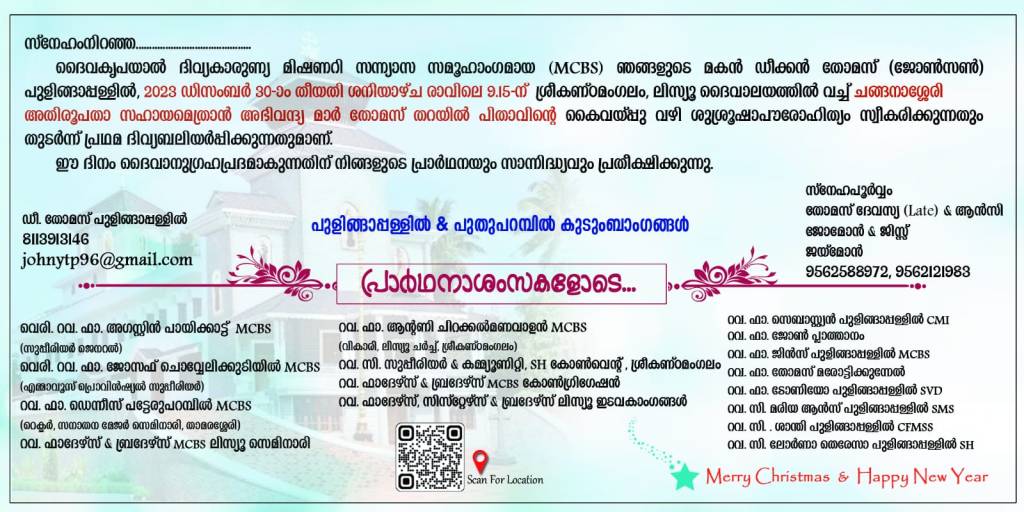 Priestly Ordination and First Holy Qurbana of Rev. Dn (Thomas) Johnson Pulingappallil MCBS