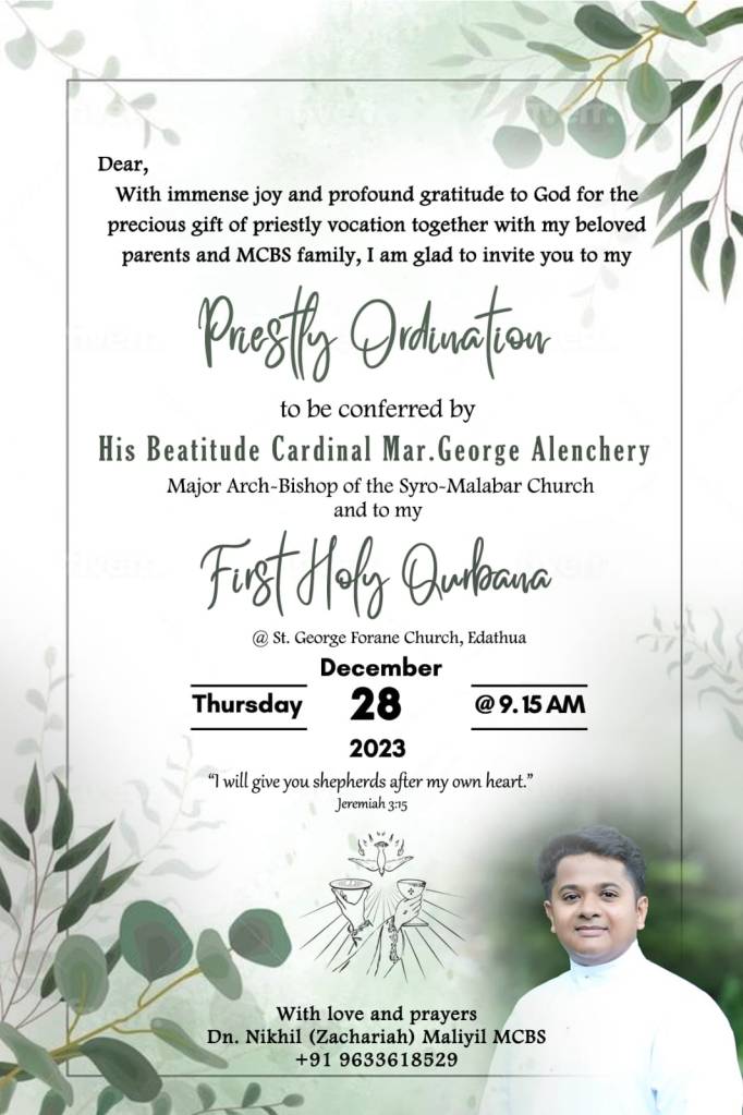 Priestly Ordination and First Holy Qurbana of Rev. Dn Nikhil Maliyil MCBS