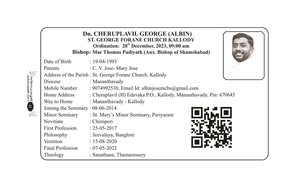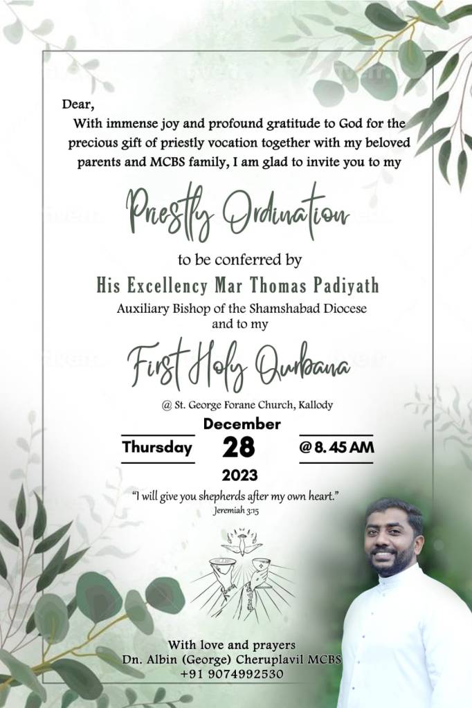Priestly Ordination and First Holy Qurbana of Rev. Dn Albin (George) Cheruplavil MCBS