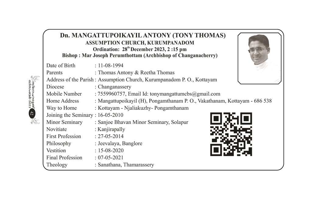 Priestly Ordination of Rev. Dn Antony (Tony) Mangattupoikayil MCBS