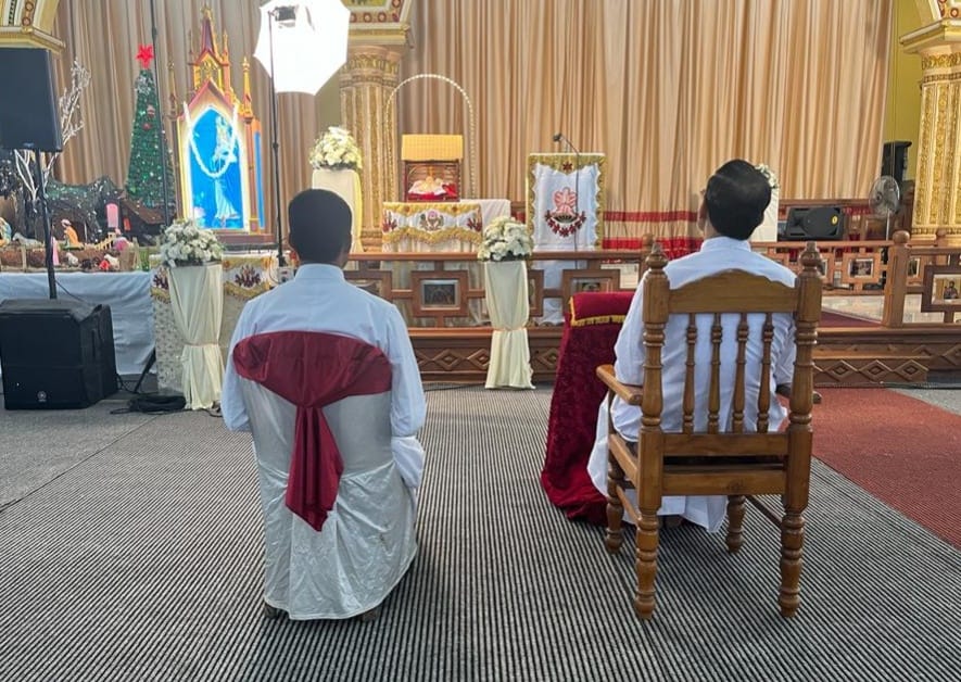 മിശിഹായുടെ മഹനീയ സിംഹാസനത്തിനു മുമ്പിൽ ഇരുന്ന് പൗരോഹിത്യ കൃപാവരങ്ങൾക്കായി തീക്ഷ്ണമായി പ്രാർത്ഥിക്കുകയാണ്