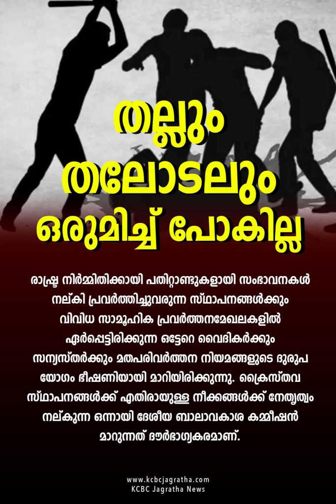 ദേശീയ ബാലാവകാശ കമ്മീഷനുമായി ബന്ധപ്പെട്ടവ മാത്രമല്ല ബിജെപി ഭരിക്കുന്ന വിവിധ സംസ്ഥാനങ്ങളിൽ ക്രൈസ്തവരും മറ്റു ന്യൂനപക്ഷ വിഭാഗങ്ങളും നേരിടുന്ന ഭീഷണികൾ. സുരക്ഷിതമായി ജീവിക്കാനുള്ള സാഹചര്യം സാധാരണ ജനങ്ങൾക്ക് ഇല്ലാതാവുന്നതും, സ്ഥാപനങ്ങൾക്കും സമുദായ നേതൃത്വങ്ങൾക്കും പ്രവർത്തനസ്വാതന്ത്ര്യം നഷ്ടപ്പെടുന്നതും, വർഗീയ വിദ്വേഷ പ്രചാരണങ്ങളുടെ ഫലമായി ആൾക്കൂട്ട അക്രമങ്ങൾ ഉണ്ടാകുന്നതും ഒട്ടേറെ സംസ്ഥാനങ്ങളിൽ റിപ്പോർട്ട് ചെയ്യപ്പെടുന്നു. പ്രത്യേകിച്ച്, വിവിധ ബിജെപി സർക്കാരുകൾ നടപ്പാക്കിയിട്ടുള്ള കരി നിയമമായ മതപരിവർത്തന നിരോധന നിയമം വ്യാപകമായി ദുരുപയോഗിക്കപ്പെടുന്നതുമൂലം ഒട്ടേറെ നിരപരാധികൾ കേസുകളിൽ അകപ്പെടുന്ന സ്ഥിതി വിശേഷമാണ് ഉള്ളത്.